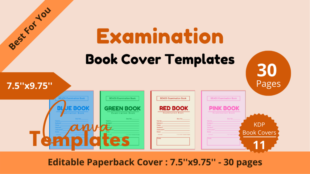 11 Book Cover Templates | Cover Templates for Examination Book 7 1/2" x 9 3/4" 30 pages * Commercial Use